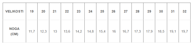TABELA VELIKOSTI:
