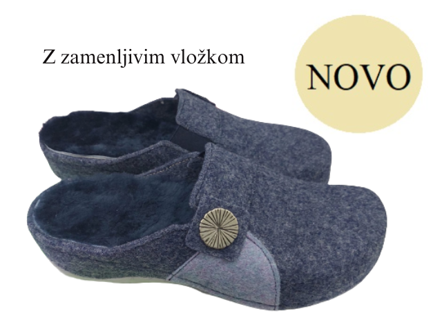 Zgornji del je z umetnim materialom prevlečen filc, podplat pa je iz pravega usnja.