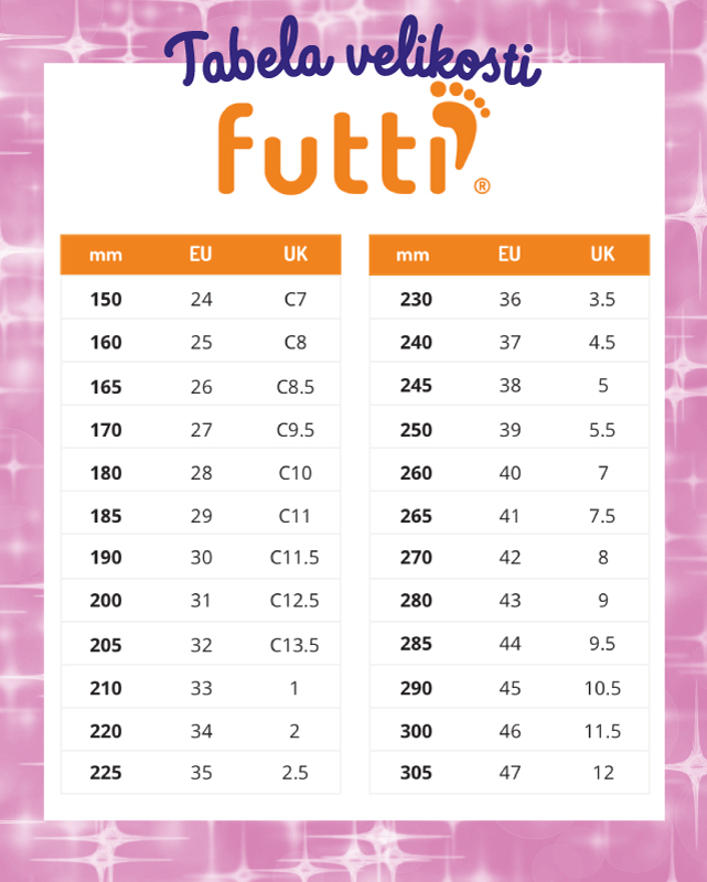 Zaradi anatomsko oblikovanega podplata, priporočamo eno številko večje, da stopalo sede v podplatno korito.