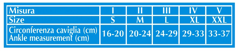 Elastična opornica / bandaža za gleženj, z odprtino. Za izbiro prave velikosti izmerite obseg gležnja in številko primerjajte v tabeli.