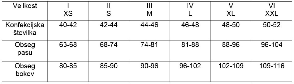Opomba: številke so italijanske. Priporočamo, da izberete hlačke dve številki večje.